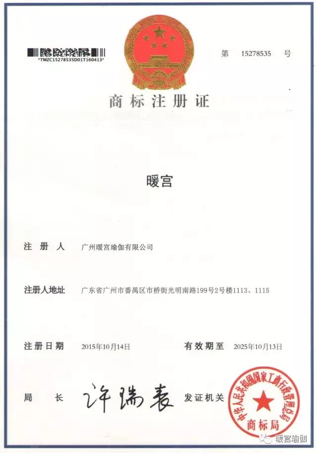 2015年10月14日暖宫商标正式下证