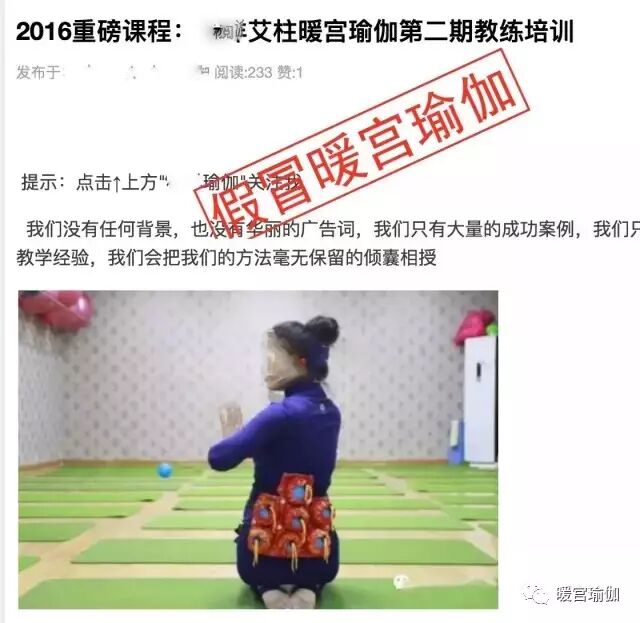 为了给这些机构留些颜面,抹去他们机构名称,如果有人认为本文侵权,请联系暖宫瑜伽,或者直接起诉我们也可以。我们公司全称是广州暖宫瑜伽有限公司,电话是4009997601,地址在广州番禺光明南路199号友利电商园2-1113。 |